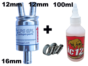 16mm IN - 2 x 12mm OUT Auto Gas LPG Filter ic12 100ml Service Kit