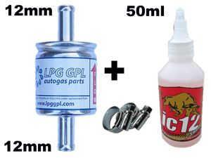 12mm IN - 12mm OUT Autogas LPG Filter ic12 50ml Service Kit
